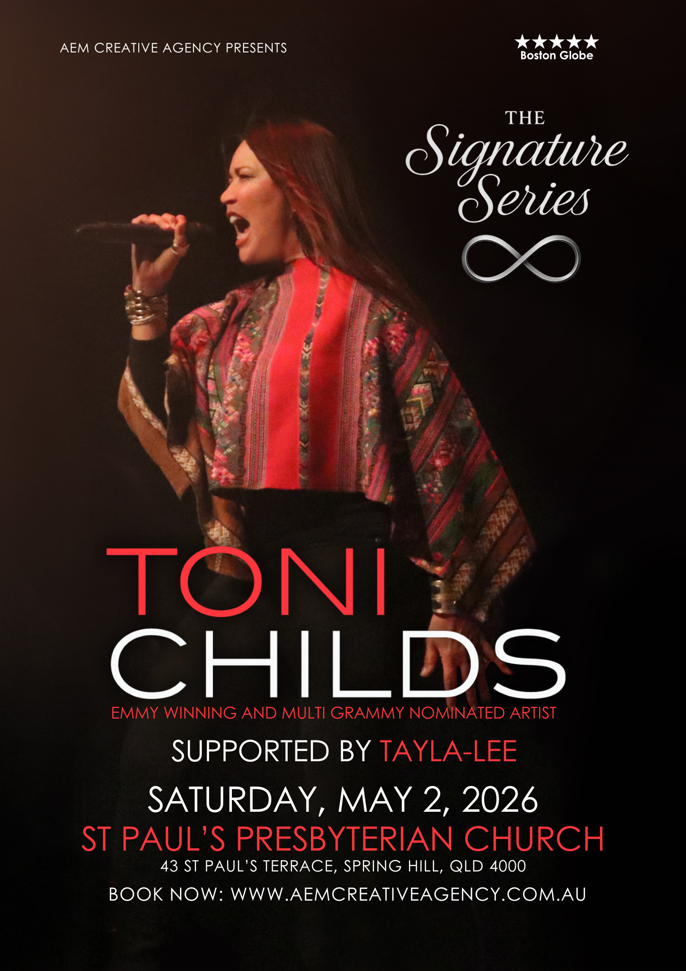 Experience an unforgettable night as Emmy winner and Grammy-nominated icon Toni Childs headlines the opening show of the Signature Series, supported by Tayla-Lee. An intimate evening of powerful vocals, storytelling and soulful performances inside the stunning St Paul’s Church. A world-class concert experience not to be missed.